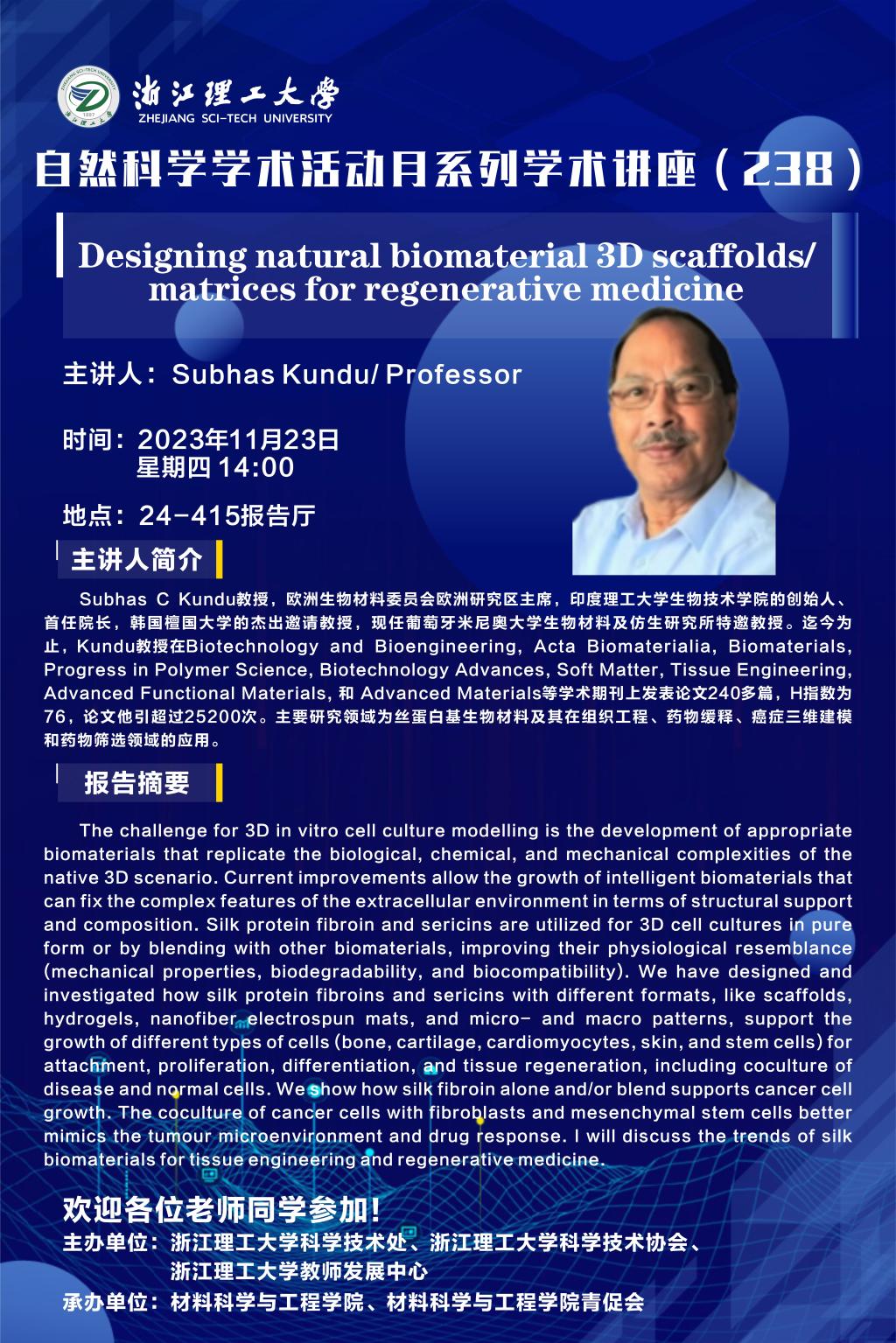 学术讲座 当前位置: 色花堂 > 学术讲座 > 正文 学术讲座【69】:Designing natural biomaterial 3D scaffolds/matrices for regenerative medicine 作者:时间:2023-11-22浏览次数: